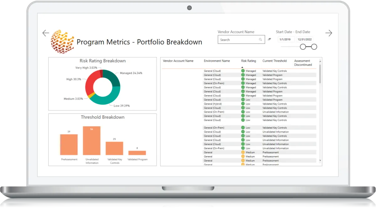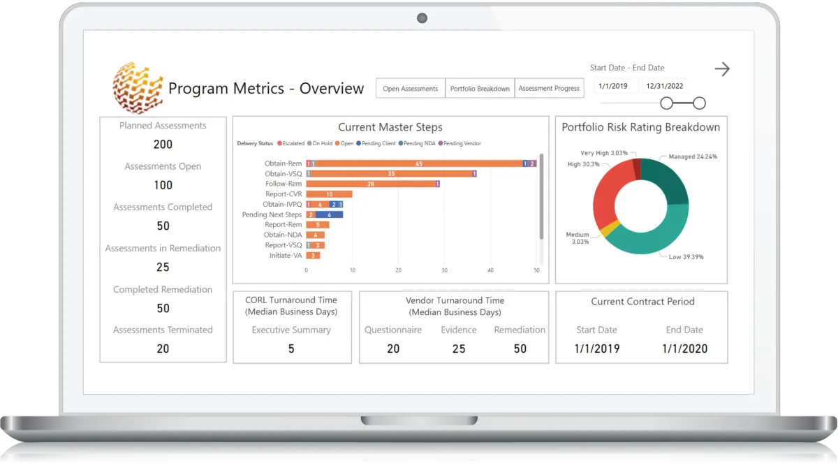 Dashboard reporting on vendor portfolio, assessment, and remediation activities